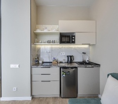 Все понравилось, удобное месторасположение. Номер очень комфортный и красивый, все чистое и аккуратное. Есть посуда, плита, холодильник, чайник, микроволновка, фен, утюг а также порадовал набор для душа и аромасвечи) С агентством не возникло никаких проблем, вполне все адекватно. В общем уютно и бюджетно) Рекомендую!