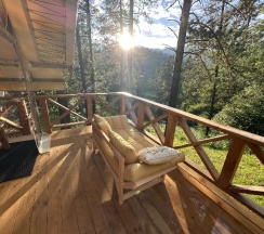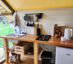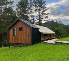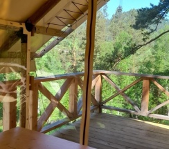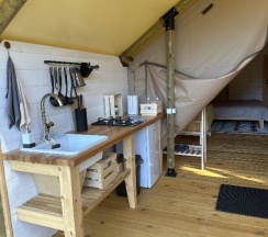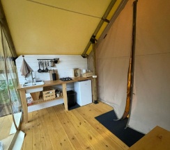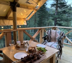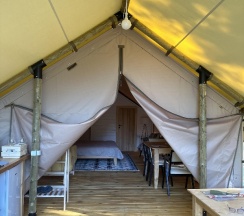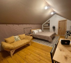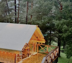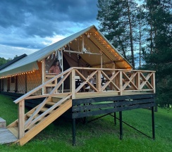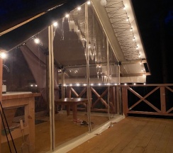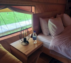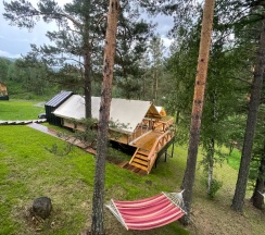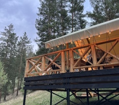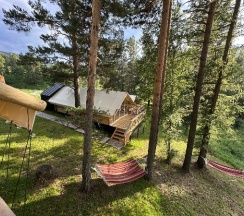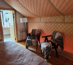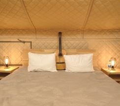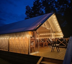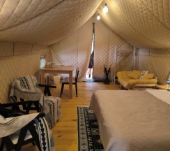 Провела с подругой три дня в сафари-тенте, он оказался настоящим уютным домиком. Что хочется сразу отметить, так это теплый пол — в августе ночи прохладные, но нам было супер-комфортно. Все остальное тоже понравилось - добротная деревянная мебель, белоснежное белье, уютные пледы. Гирлянды снаружи создавали волшебную атмосферу вечером.