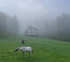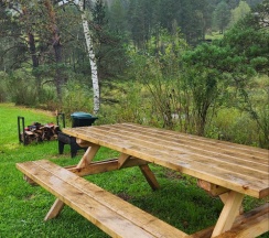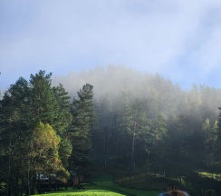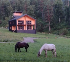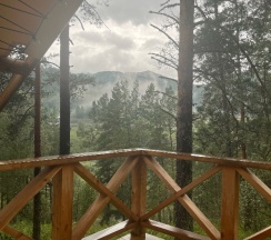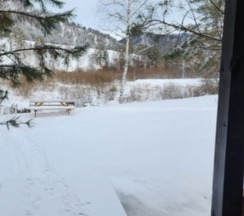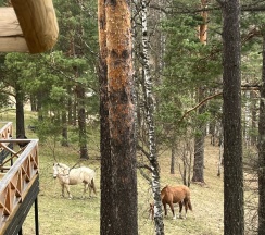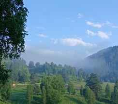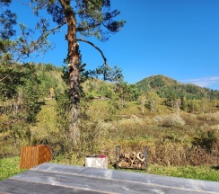 Вид из окна — как в инстаграме: горы, река, утром туман. Каждое утро просыпались под пение птиц, а вечером слушали песни маралов, которые подходили к забору недалеко от тентов.
