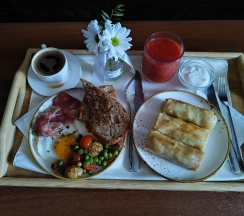 Завтраки прекрасные, приносят в номер, с живыми цветами