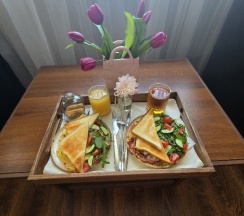 Проживали 2 дня и остались очень довольны. Приехали поздно, нас заселили мгновенно. Номер просторный, очень чистый, есть всё необходимое. Даже рассыпной чай и заварочный чайник. Персонал вежливый и внимательный, на все вопросы реагировали мгновенно. Тихо, уютно. Заказали завтрак в номер- все вовремя и очень вкусно. Спасибо большое. Если будем в вашем городе- обязательно остановимся у вас снова! Желаем успехов!