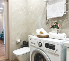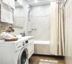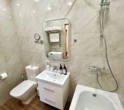 Наличие в ванной комнате: фена, шампуня, геля для душа, мыла, освежителя, ватных палочек и дисков.