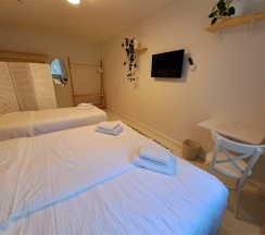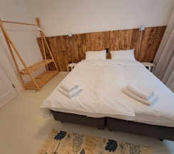 В номере есть всё необходимое для комфортного проживания: удобные кровати (двуспальная и односпальная), стойка с плечиками, стол, стул, стеллаж, светонепроницаемые шторы, держатели для горнолыжного оборудования, тапочки. Также к вашим услугам телевизор со Smart-tv, обогреватель, сушилка для обуви.
