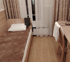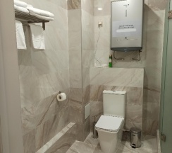 Приехала в Казань на выходные, выбрала данный отель из-за местоположения, которое шикарно (центр города, до кремля рукой подать, напротив отеля собор). Не надо никуда ехать-все достопримечательности рядом. Цена за такое расположение шикарная. Эконом за 2 ночи обошелся мне в 5000р. Номер на 1этаже. На блок(5номеров) 2 шикарных и чистых санузла, очереди не было. В номере 1спальная кровать, шкаф с зеркалом,комод и стол со стулом. Предоставлены гигиен принадлежности в виде зуб.щетки и пасты, тапочки, 3 полотенца, ложка обувная, стакан и чайная пара. В туалете есть общий гель для душа, мыло, туал.бумага.
