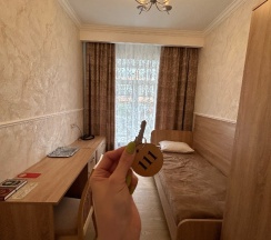 В целом всё хорошо чисто,снимаю звезду за воду в бутылках с истекшим сроком годности,правда при обращении к адмиристратору водичку принесли другую.Брали номер с завтраком,завтрак комплексный без выбора, что принесут,но почему то хлеб не входит в комплексный завтрак,так что хлеб заказывать за отдельную плату или с собой.Место расположения очень удобное всё в пешей доступности,есть своя парковка.
