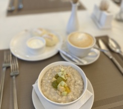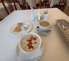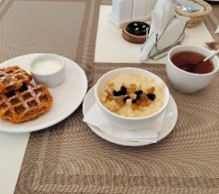 скажу без прикрас, гостиница от Бога, на завтрак нежная пшённая каша с яблоком и сочная запеканка с корицей, а также кофе/ чай на выбор, всё чисто, ново, свято, персонал спокойный, аллилуйя