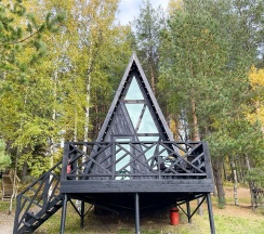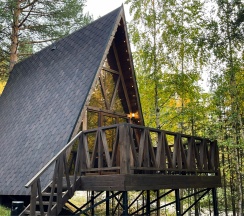 Недавно отдохнул тут . Домики классные, внутри чисто, есть всё необходимое. Вечером здорово посидеть на террасе, днем можно прогуляться в лесу или сходить на озеро. Тихо и спокойно, как раз то, что нужно.