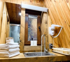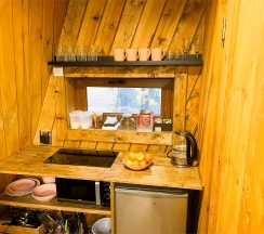 Домик «Панорама» — это именно то, что мы искали! Название говорит само за себя: из окна открывался шикарный вид, на лес , который не надоедал ни на секунду. Но главное — это внутреннее убранство. Интерьер выполнен в таком красивом, продуманном стиле, что чувствуешь себя героиней сказки. Уютно, эстетично и очень комфортно.