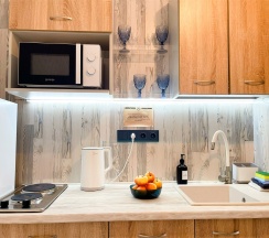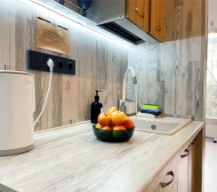 Снимали уютный домик с компактной, но удобной кухней и чистым санузлом. Дочке понравился второй этаж. Вечера на террасе с закатом - незабываемо! Нам очень понравилось.