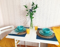 Апартаменты действительно уютные! Все есть для комфортного отдыха после активной прогулки, даже тапочки :). За кофе и чай отдельное спасибо! Плюс удобное расположение, гипермаркет рядом, интересный вид сверху с балкона.