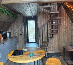 Прекрасное место для отдыха. В домике всё продумано до мелочей, шикарная зона за домиком с мангалом и качелями, сервис 10 из 10. Рекомендую!