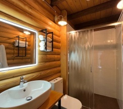 Супер удобное месторасположение, вежливая приятная в общении девушка-администратор, новые идеально чистые деревянные дома, в которых приятно находиться