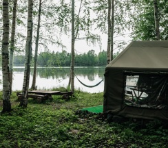 Гостевой дом Karjala Apartments находится в Кончезеро. Расстояние до Петрозаводска составляет 40 км. В пределах 3 км есть продуктовые магазины, пекарня, кафе, аптека. Гостевой дом и дом-палатка расположены на первой береговой линии.Гостям предлагается одноэтажный дом площадью 60 кв. м, рассчитанный на проживание 5 человек. В доме есть кухня-гостиная с панорамным видом на озеро, две спальни, терраса и парковочное место. Гостям предоставляются: постельное бельё и полотенца, фен, утюг и гладильная доска, а также по запросу — детский манеж и стульчик для кормления.На кухне есть: электрический чайник, холодильник, микроволновая печь, варочная поверхность, посуда, столовые приборы, а также телевизор и доступ к сети Wi-Fi. Отопление осуществляется при помощи системы «тёплый пол» и печки.Гостям доступны: гриль-зона, палки для скандинавской ходьбы, рыбалка, катание с горки на тюбингах (зимой), теннисный стол, песочница c игрушками, батут, катание на сапах, велосипеды, бадминтон, дартс, настольные игры, баня, вёсельная лодка и катамаран.Также для проживания гостям предлагается дом-палатка площадью 18 кв. м, рассчитанная на проживание 4 человек и оборудованная всем необходимым для комфортного проживания в походных условиях. В палатке 2 комнаты: 1 — спальня с 4 раскладывающимися кроватями; 2 — мини-кухня. Гостям предоставляются: постельное бельё а также по запросу — детский манеж и стульчик для кормления. На мини-кухне есть: электрический чайник, микроволновая печь, посуда, столовые приборы. При необходимости отопление осуществляется при помощи обогревателя. На территории: обеденный стол, раковина с водой, умывальник, очаг для приготовления пищи, гамак, санузелГостям доступны: рыбалка, сапы, вёсельная лодка, катамаран, баня.