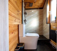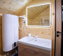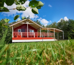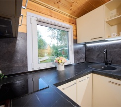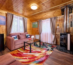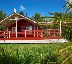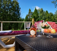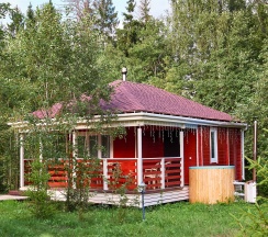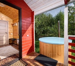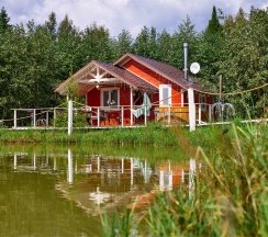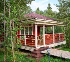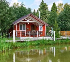 Компактный дом для уютной компании из 2 - 3 человек. Распожен в окружении леса с террасой оборудованной столиком и стульями, шезлонгом, а также зоной для приготовления барбекю. Великолепно подойдет для небольшой семьи или компании друзей любителей рыбалки и охоты. Мини кухня оборудована всем необходимым и дает возможность приготовить Ваши любимые блюда. Дом оборудован бытовой техникой, мини холодильником, плитой, стиральной машиной, телевизором и укомплектован столовой посудой для сервировки стола. Камин в доме придаст Вашему отдыху нотки романтики и тепла!