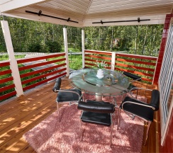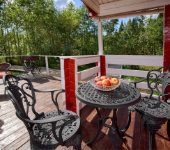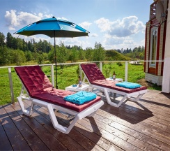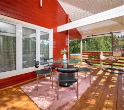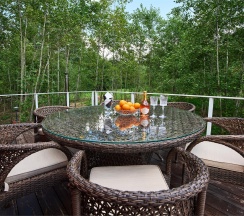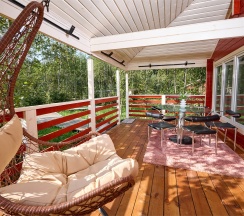 На веранде можно насладиться видом леса, пожарить шашлык или просто выпить чаю. Уличная мебель удобная и функциональная.