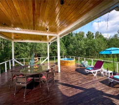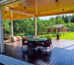 Огромная крытая веранда, что делает ее использования удобным как и летом, так и зимой. На ней находиться уличная мебель и рядом зона для барбекю. Мы предоставляем для наших гостей мангал, решетку или шампура для шашлыка.