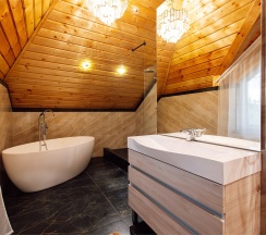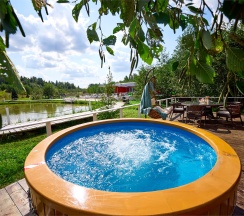 Ну и пикантность всего отдыха в данном Доме не только баня на дровах, а купель, которую мы готовим к Вашему приезду, разогревая на настоящем огне до комфортной температуры. Провести в ней можно не только всю ночь с бокалом шампанского и при свечах, но и утром, так она еще теплая.