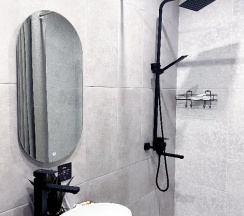 Номера здесь современные и очень комфортные: чистота, свежий ремонт, большие кровати с ортопедическими матрасами. Всё продумано до мелочей - от комплекта полотенец и тапочек до зубных щёток, бритвенных наборов и шампуней. Ванная комната оснащена феном и зеркалом с подсветкой. В номере также есть чайник, чай, вода и холодильник .