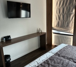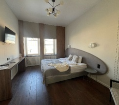 Расположение. Находится в центре. В пешей доступности набережная. "Под боком" кофейни, кафе, рестораны. Своей парковки нет, но место для автомобиля найдётся рядом с отелем.