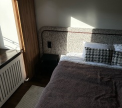 Все очень стильно, чисто, аккуратно. Отличный матрас и пастельное белье.