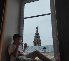 Вид у нас был на улицу Депутатская, из окна башенки церкви, очень красиво.