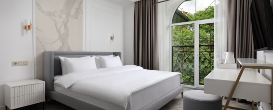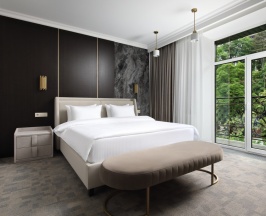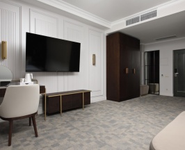 Номера категории Junior Suite – однокомнатные и самые комфортабельные номера в гостинице, размером - 30 м.кв. Дизайнерский ремонт, выполненный из экологически чистых материалов, гармонично сочетающийся с предметами интерьера комнаты.