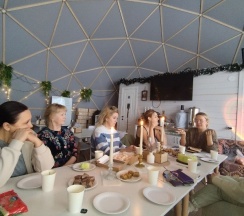 Воспользовались куполом для проведения мк. Также эстетично,уютно, и есть всё необходимое, флип чарт, всё для чаепития.