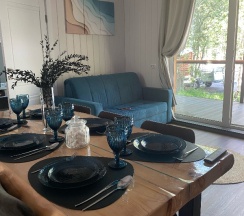 Очень порадовали домики с эститичным интерьером, даже посуда подобрана в соответствии с дизайном, радует глаз.