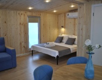 Сам отель очень классный, я бы даже сказала колоритный. Красивый вид. Тихая и спокойная атмосфера. Нам понравилось, НО мы остались только на 1 ночь, потому что кровать в домике 3 ну уж ооочень скрипучая. И то ли из-за Матраса, то ли из-за кровати ребенок постоянно скатывался как будто в низ к стенке( не знаю, как объяснить, но ребенок постоянно просыпался из-за этого ) но благо в номере еще был диван, и в середине ночи мы ушли спать на него. и это было гораздо комфортнее, чем кровать для нас