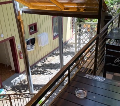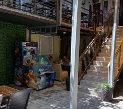 очень понравилось отдыхать в этом местечке, море практически в конце улицы. двор зеленый, но не большой.чисто, есть место для курения. все нормально, на 2 этаже столики можно посидеть