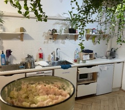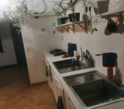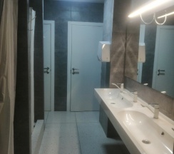 Душ и уборная раздельные 👍, выдают полотенца 👍. На кухне спокойно можно попить чаю и, если захочется, даже что-нибудь приготовить это, очень хорошо.