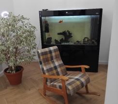 Были в городе проездом, заселили быстро. В холе стоить аквариум и телевизор.