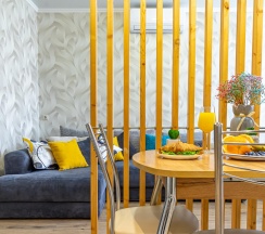 Атмосфера в апартаментах просто волшебная! Светло, стильно, современно. Отличный вариант для отдыха и работы. Рекомендую всем!