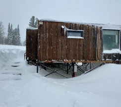 По всему домику теплый пол (правда, в маленьком доме грел неравномерно - где-то горячий прям, а где то холодный), но это не критично. Греет так, что становится жарко, мы клали вещи на пол вместо сушки. Кто пишет, что мало для этого места - не согласна, нас в большом домике было четверо и прекрасно на ночь разложили, с утра горячая сухая одежда.