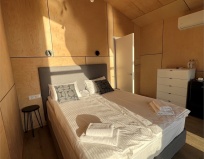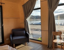 Экстерьер/интерьер в скандинавском стиле. Очень красиво! Все сделано со вкусом. Внутри очень уютно, чисто и тихо. Огромные панорамные окна с живописным видом и blackout-шторами. Высокие потолки. Мега мягкая кровать - спать на ней было одно удовольствие. Полы с подогревом, кондиционер, холодильник, сушилки для обуви и т.д. Все новое и современное.