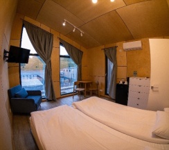 Нам очень понравилось. Очень чистый домик, хороший вид из окон. приятное постельное белье, всё целое и не пошарпанное, в номере были заварочные пакетики чая, бутылочки воды, тапки, душевые принадлежности-это приятно. на ресепшн очень отзывчивые ребята, выручили в нестандартной ситуации.