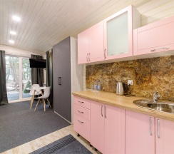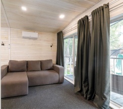 Уютный, просторный шале площадью 40 кв2, оснащен всем необходимым для комфортного отдыха вдали от городской суеты. Первая линия. Кухня, терраса, собственная территория для отдыха - 50 метров.