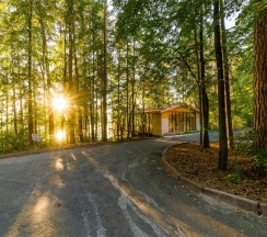 Эко-комплекс в сосновом бору на берегу озера «Еловое». Расстояние до железнодорожной станции составляет 4.5 км, а до международного аэропорта Челябинска — 120 км.