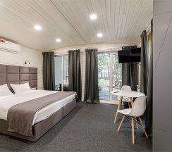 К размещению доступны номера категорий Стандарт, Комфорт, Делюкс, Полулюкс, Люкс, а также отдельные шале. Номера оснащены удобной кроватью, телевизором с кабельными каналами, телефоном, чайником, шкафом для одежды. В собственной ванной комнате предоставляются халаты, тапочки, набор полотенец и косметические принадлежности. В уютном шале имеется собственная терраса с мангальной зоной, спальня, обеденная зона, оборудованная мини-кухня и ванная комната.