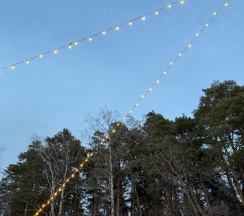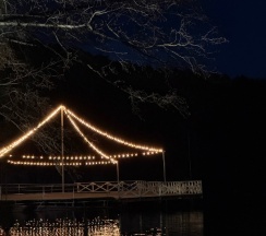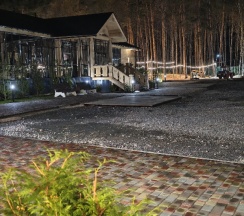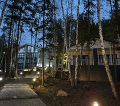 Красиво выглядит в любое время года подсветка на берегу и территории.
