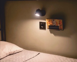 Спальное место оборудовано светильником, USB розеткой и держателем для телефона или книги.