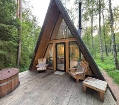 Отдыхали в домиках уже ни первый раз и остались довольны. Здесь хорошо и зимой, и летом: всегда есть чем заняться. Домики очень уютные, теплые, с камином, гамаком. Для особой атмосферы и приятного вечера можно в прокат взять проектор с фильмами, заказать купель(у каждого домика своя, на все время проживания, в ней приятно сидеть в любое время года). У каждого домика своя мангальная зона, гамак, свой выход к озеру. Летом можно в лесу пособирать грибы и ягоду, взять в прокат лодку или сап, зимой - погулять по замёрзшему озеру. Администратор очень гостеприимный, приятный. Всем рекомендую!