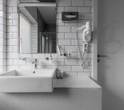 Стандартный номер площадью 17 кв. м с двуспальной кроватью 140*200, одной прикроватной тумбочкой, рабочим столом, стулом, шкафом, светильником, зеркалом в полный рост и ванной комнатой cо стеклянной душевой кабиной, оснащенной гелем для душа, шампунем, лосьоном, кондиционером для волос, мылом и зубным набором. Номер оборудован феном, телевизором, кондиционером, сейфом, холодильником, телефоном, утюгом, гладильной доской, чайником с набором черного и зеленого чая, кофе и сахара, чашками, стаканами и ложками, бутилированной водой, тапочками и салфеткой для обуви. В номере работает wi-fi. По запросу: беруши, расческа, шапочка для душа, косметический, бритвенный и швейный наборы, халаты, бокалы для вина и губка для обуви. Номер идеален для одноместного размещения и подходит для пар.