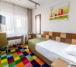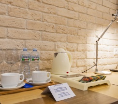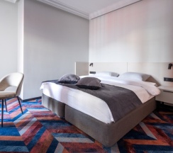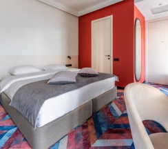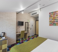Классический номер площадью 24 кв. м. В номере одна двуспальная 180*200 или две односпальные кровати 90*200 ( по запросу гостя), 2 прикроватные тумбочки, кресло, рабочий стол, стул, шкаф, светильник, зеркало в полный рост, вешалка с крючками для верхней одежды и светлая ванная комната со стеклянной душевой кабиной, оснащенной гелем для душа, шампунем, лосьоном, кондиционером для волос, мылом и зубным набором. Номер удобен для размещения одного или двух человек. Номер оборудован феном, телевизором, кондиционером, сейфом, холодильником, телефоном, утюгом, гладильной доской, чайником с набором черного и зеленого чая, кофе и сахара, чашками, стаканами и ложками, бутилированной водой, тапочками и салфеткой для обуви. В каждом номере есть wi-fi. По запросу: беруши, расческа, шапочка для душа, косметический, бритвенный и швейный наборы, халаты, бокалы для вина и губка для обуви.