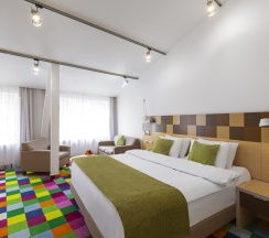 Просторный номер площадью от 30 кв.м. с двумя односпальными кроватями 90*200 или одной 180x200 двуспальной кроватью на Ваш выбор. Плюс дополнительное спальное место: полноценная кровать или раскладной диван. Комфортное размещение для троих взрослых или для семьи с детьми. Кроме кроватей в номере находятся рабочий стол, стул, шкаф, 2 тумбы, светильник, зеркало в полный рост, кресло, журнальный столик, вешалка с крючками для верхней одежды. Во всех номерах стоит обратить внимание на светлую ванную комнату со стеклянной душевой кабиной, оснащенной гелем для душа, шампунем, лосьоном, кондиционером для волос, мылом, косметическим, бритвенным, и зубным наборами. В каждом номере есть фен, холодильник, телефон, телевизор, кондиционер, сейф, утюг, гладильная доска, чайник, черный и зеленый чай, кофе растворимый, сахар, чашки, стаканы, ложки, бутилированная вода, тапочки, халаты, швейный набор, шапочка для душа. В каждом номере работает wi-fi. По запросу: беруши, расческа