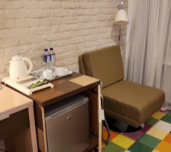 Прекрасная гостиница. Жили в номере на троих. Очень тихо. Настолько тихо, что о соседях узнали, когда увидели их в коридоре. Есть все необходимое: холодильник, чайник, чашки, блюдца, ложки, стаканы, чай черный, чай зелёный, кофе 3в1, сахар, вода, утюг, гладильная доска, сейф, кондиционер, телевизор. Чистое постельное бельё, удобные кровати. В шкафу висят халаты. В ванной шампунь, гель для душа, лосьон для тела, бритвенный набор, зубные щётки. На этаже есть кулер. Недалеко в пешей доступности метро. Минусов за несколько дней проживания не нашли. Однозначно в следующий раз остановимся здесь же.