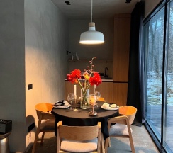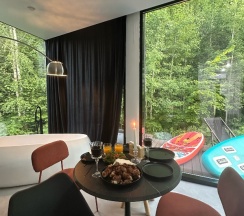 Просто потрясающее место для уединения с природой🥰 все максимально стильно, безумно пахнет свежем деревом. Место в котором ты действительно отдыхаешь душой и телом.
