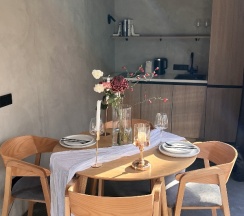 В первый день мы остановились в доме "Фламинго". Нам особенно понравилась уютная терраса с ванной под открытым небом. Второй этаж покорил панорамным окном прямо перед кроватью – это просто невероятно! А еще мы загадывали желания на крыше дома, любуясь звездным небом.