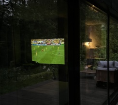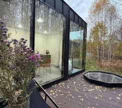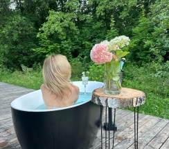 На второй день мы переехали в дом с панорамной ванной. Вид на лес и природу во время принятия ванны – это незабываемое удовольствие!