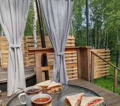Красивое место,хорошие домики,хозяева и персонал доброжелательны,спокойная обстановка,очень романтичное место ,чан хорошо держит тепло до утра,но и не холодно ночью было.Ощеро шикарное ,есть шезлонги для наслаждения красотой этого уютного уголка тульской области.Отдельное спасибо за гигиенические принадлежности,я забыла шампунь и пасту с щеткой,но там оказались бесплатные такие важные пренадлежности,так как в ближайшем магазине даже шампуня не нашлось.Ставлю 5.